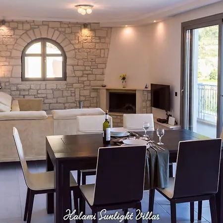 Kalami Sunlight Villa оснащена зручностями для самостійного приготування їжі, включаючи обладнану кухню та обідню зону, де гості можуть насолодитися сніданком. Також є посудомийна машина і духовка. До ресторану "Elia Pool Bar' можна дістатись за 8 хвилини пішки. Також є автовокзал Kalami, розташований лише за 0.7 км. Помешкання пропонує своїм гостям взяти напрокат автомобілі, щоб оглянути околицю, або зайнятись підводним плаванням з маскою.